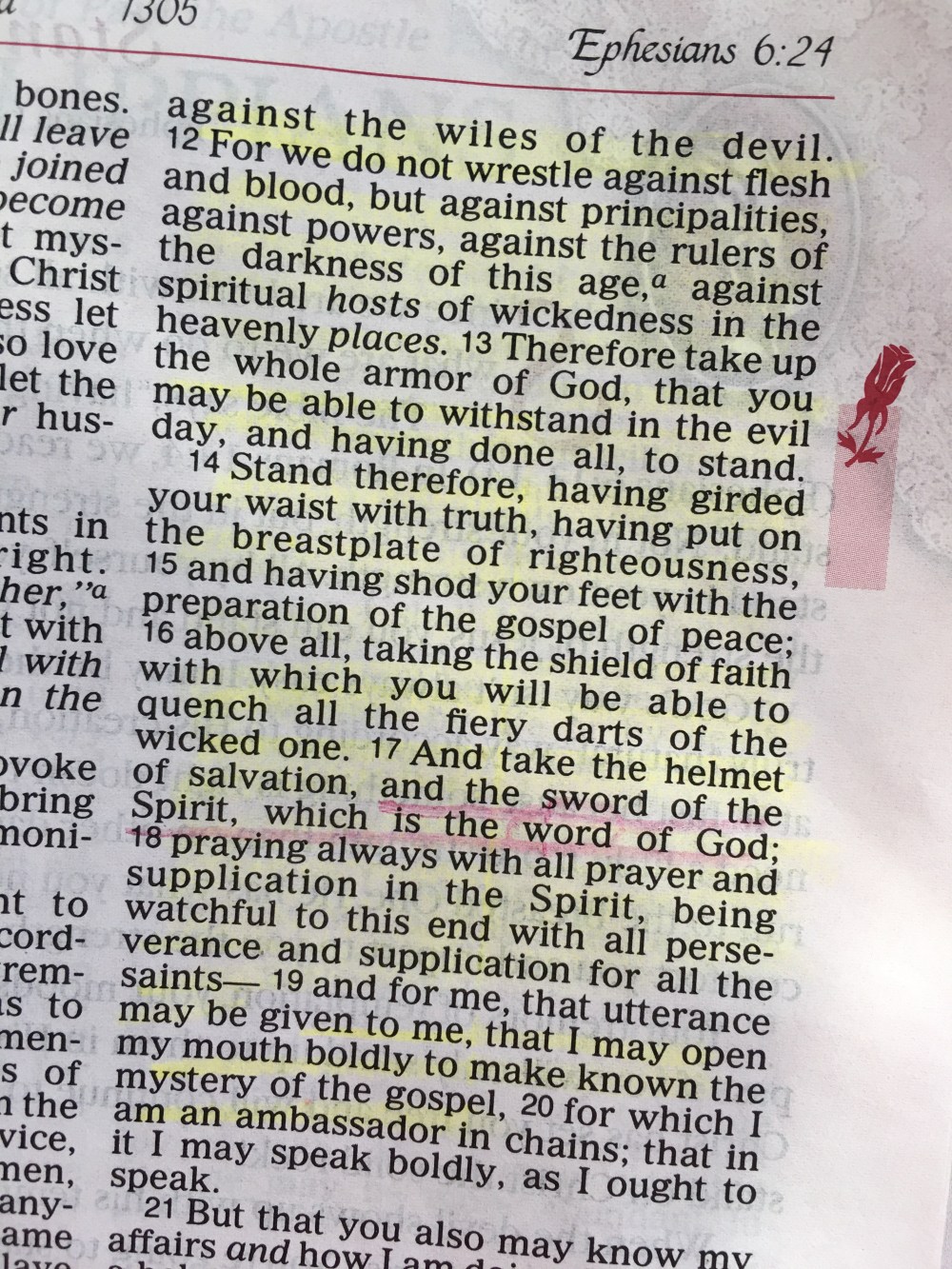 I am a prayer warrior. God has blessed me with discernment in seeing most times the origination of the battles I am fighting, whether my own or for others. Many times, those battles are brought on by our own lack of wisdom, our own free will, God’s fatherly love to shape and discipline us to direct our paths more clearly, or an outright attack of evil. Like most mamas, some of the biggest battles I have fought on my knees have been for my kids. Regardless of the reasons for a situation, the struggles of our children, we are impressed upon to lay them at the throne of the loving Almighty, but we are also instructed to put on the Armour and fight. The weapon we are instructed to use is His Word. We are to swing the sword and attack.